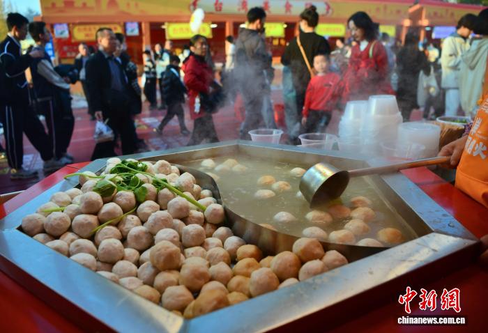 图为台湾好食新竹年夜鱼丸明相好食铺。中新社记者 弛斌 摄